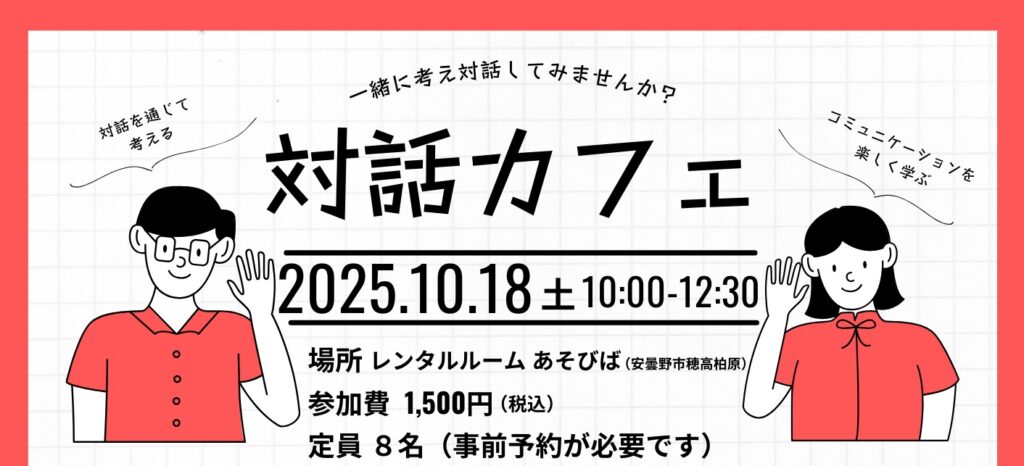 【対話カフェ】2025/10/18(土)レンタルルームあそびば(長野県安曇野市)にて開催します【終了しました】
