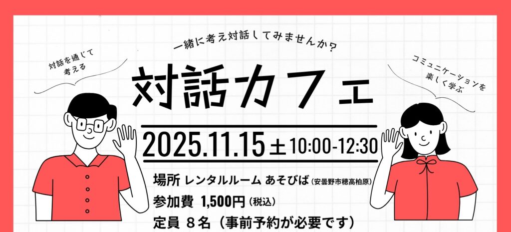 【対話カフェ】2025/11/15(土)レンタルルームあそびば(長野県安曇野市)にて開催します【終了しました】