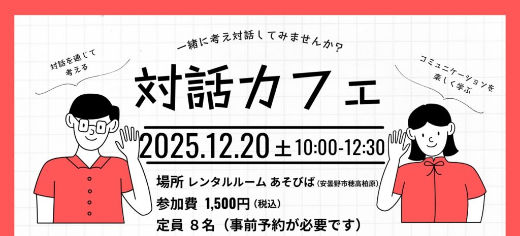 【対話カフェ】2025/12/20(土)レンタルルームあそびば(長野県安曇野市)にて開催します